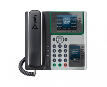 8线路按键(主显示屏)加集成6键辅助显示屏,支持多达32个线路、功能和联系人。 明亮的3.5英寸彩色显示屏。 Poly NoiseBlockAl人工智能噪声屏蔽技术和Poly Acoustic可防止背景噪音和周围说话声干扰会议。 集成蓝牙功能,用于与手机或耳机配对(E450)。 Wi-Fi连接(E450)。 文本转语音和辅助功能新选项。 集成Microban® 抗菌产品保护技术。 支持选配Poly Edge E扩展模块。 使用NFC技术来集成高级功能。