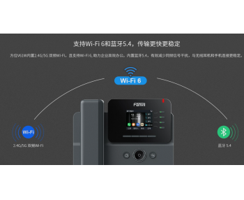 方位V61W是一款外观时尚、性能卓越的千兆彩屏商务话机。采用2.4英寸(320x240)高清彩色液晶屏,拥有4条SIP线路,支持高清语音和6方语音会议,支持千兆双网口和PoE供电,内置2.4G/5G双频Wi-Fi(Wi-Fi 6)和蓝牙5.4,可满足不同的企业应用场景,为用户提供卓越的交互体验和舒适的即时通讯服务。