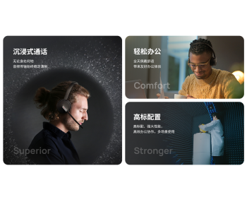 BH70采用三阵列麦克风,麦克风长度从78mm增至135.7mm,拾音更精准、更清晰。 搭载亿联聆晰降噪技术,全场景智能消除周边噪音,只传输纯净、清晰人声,不受噪音干扰,随时随地顺畅沟通。 BH70耳罩采用柔软度及支撑度俱佳的的优质海绵和皮革材质,同时结合多种不同头型设计,高度贴合度使用者头部轮廓,确保舒适佩戴的同时又能保护耳廓。BH70从耳机重量、夹持力、压力、稳定性、闷热性等方面全新优化,确保使用者全天佩戴舒适。耳机整体重量从 187 克降至 146 克,降低了 20%,同时增强耳机夹持力,保持压力平衡,即使长时间佩戴也能轻松自如。